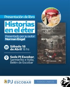 Historias en el éter tendrá su presentación oficial el sábado 18 de abril a las 18 hs en la Sede del PJ de Escobar, Sarmiento e Italia, Belén de Escobar. Entrada libre y gratuita.