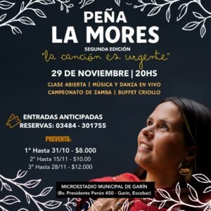 Peña La Mores nace principalmente desde la necesidad de generar un espacio cultural, artístico y de encuentro, pensado para todes les artistas, con el objetivo de promover y reivindicar nuestro folclore de raíz y contemporáneo, lleno de nuevas voces, danzas y poetas”, cuenta la cantora Fernanda Mores, alma mater del evento.